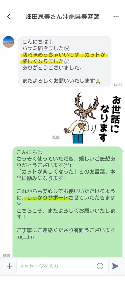 沖縄県の美容師 畑田思美さんから嬉しいお言葉いただきました