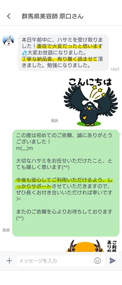 群馬県の美容師 原口さんから嬉しいお言葉いただきました