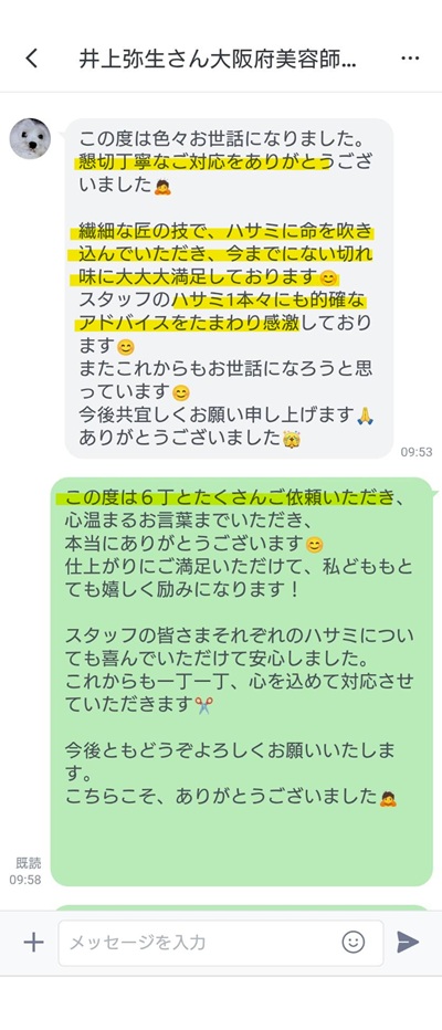 大阪府の美容師 井上弥生さんから嬉しいお言葉いただきました