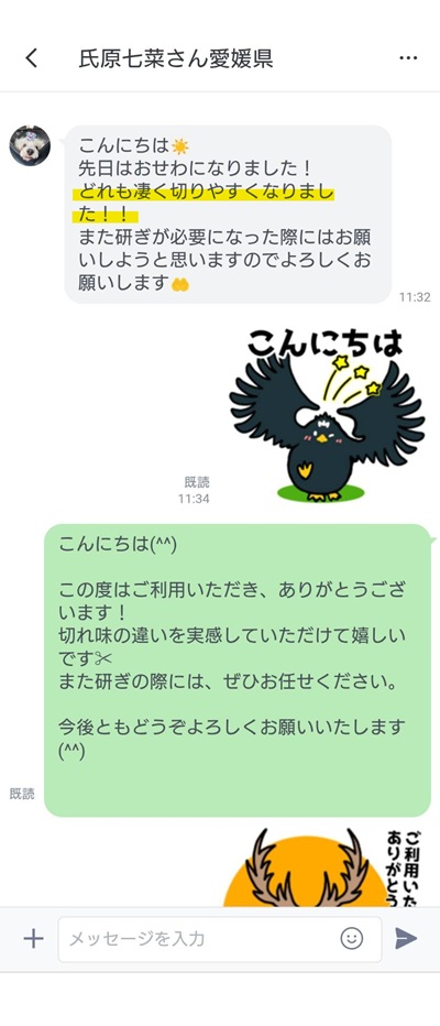 また研ぎが必要になった際にはお願いしようと思いますのでよろしくお願いします🤲