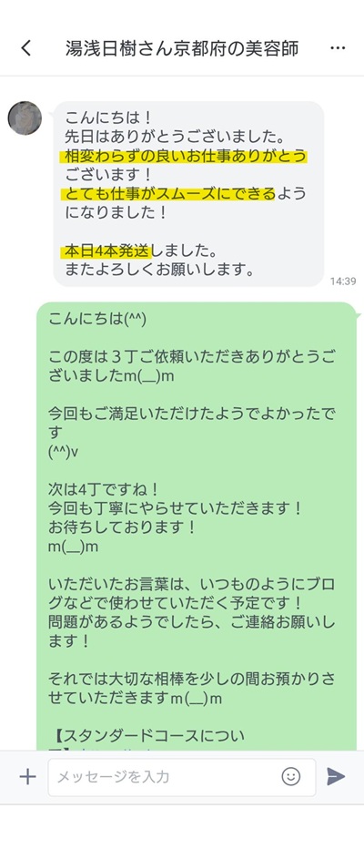 京都府の美容師 湯浅日樹さんから嬉しいお言葉いただきました