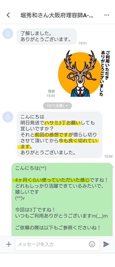 大阪府の理容師 堀秀和さんから嬉しいお言葉いただきました