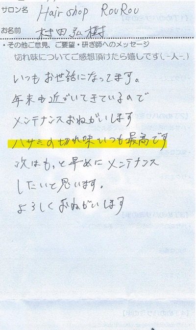 ご注文書にご感想をご記載いただきありがとうございますm(__)m