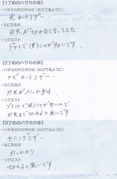 神奈川県のペットサロンさんから ハサミ3丁届きました 3度目のご依頼です いつもいつもいつも有難うございますm(__)m この方のハサミはいつもピカピカしてます! 大切にされているんですね♪ 素敵です♡ この3丁は初めてご依頼いただきます! って事は、前回のハサミも前々回のハサミも切れ味が持続してるうてこと??…