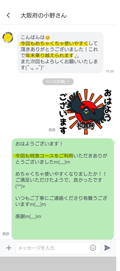 いただいた嬉しいお言葉をブログなどで紹介させていただいてもよろしいですか?「大阪府の小野さんから嬉しいお言葉いただきました」こんな感じです、ご検討くださいm(__)m
