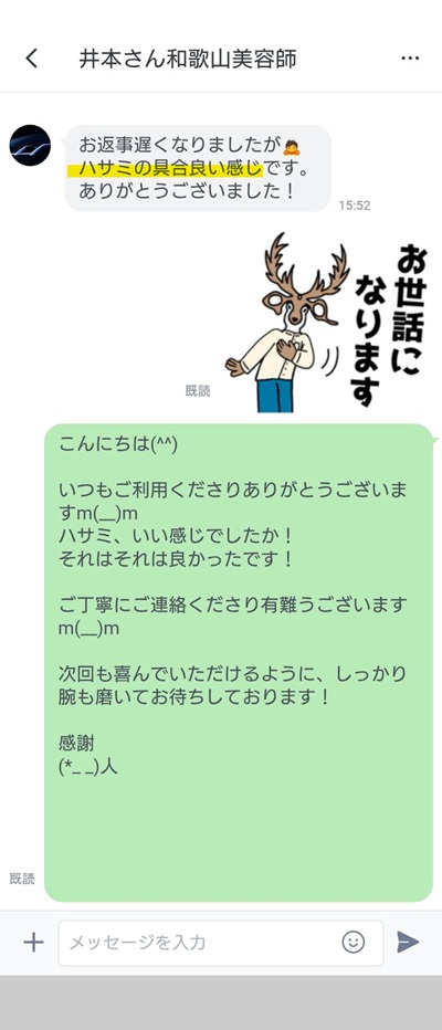 和歌山県の美容師 井本さんから嬉しいお言葉いただきました