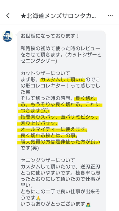 北海道メンズサロンタカハシ高橋克利さんから嬉しいお言葉いただきました