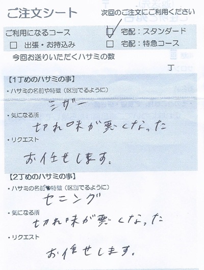 今回お送りいただくハサミの数:2丁