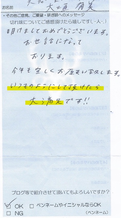 静岡県の美容師大垣有美さんから嬉しいお言葉いただきました