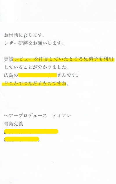 静岡県の理容室TIARE青島克義さんから嬉しいお言葉いただきました