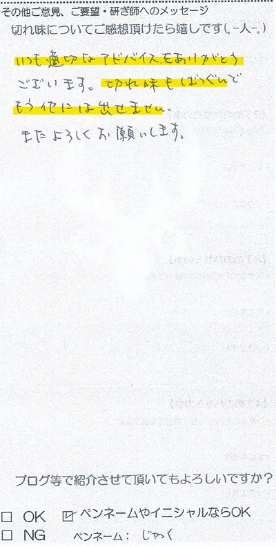 ございます。切れ味もばつぐんで