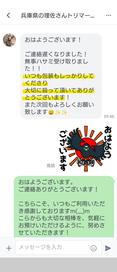 いただいた嬉しいお言葉をブログなどで紹介させていただいてもよろしいですか?「兵庫県の理佐さんから嬉しいお言葉いただきました」こんな感じです、ご検討くださいm(__)m