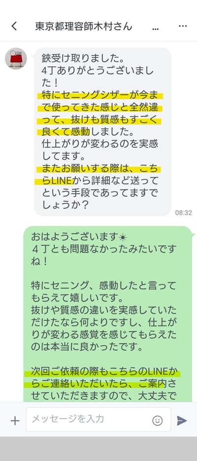 東京都の理容師 木村さんから嬉しいお言葉いただきました